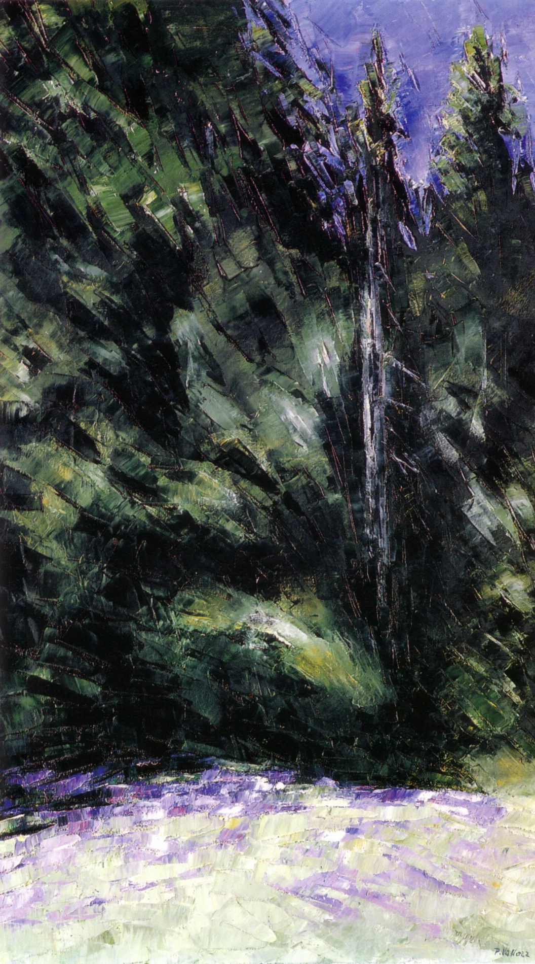 Paolo Vallorz was born in 1931 in Caldès, Val di Sole. In 1948 he attended the Academy of Fine Arts in Venice. The following year he moved to Paris where he studied at the Accademia Libera della Grande Chaumière du Montparnasse. In these years he frequented Alberto Burri, César, Yves Klein, Giacometti and Pierre Restany. The production of that period takes on an abstract character, characterized by geometric works, then informal. During his mature years, he personally bought back those works in order to destroy them, as he could no longer identify with what he had done. He then resumed painting, favouring landscapes, especially those of his native valley. In 1993 he donated a large number of works to the Mart of Rovereto, belonging to three thematic series, each of which corresponds to one of his favorite subjects of the last twenty years of the twentieth century: landscape, still life and portrait. The Mart has dedicated two personal exhibitions to him: Paolo Vallorz. Nature as a History of Man, in 2005, and The Donation Paolo Vallorz in 2011. In 1995, Jean Clair, director of the Picasso Museum in Paris and a great admirer of it, invited him to exhibit his work in the very important exhibition Identity and Otherness, which celebrated the centenary of the Venice Biennale. Vallorz spends his last time between Paris and Caldes, painting the landscapes he loves so much (2017).