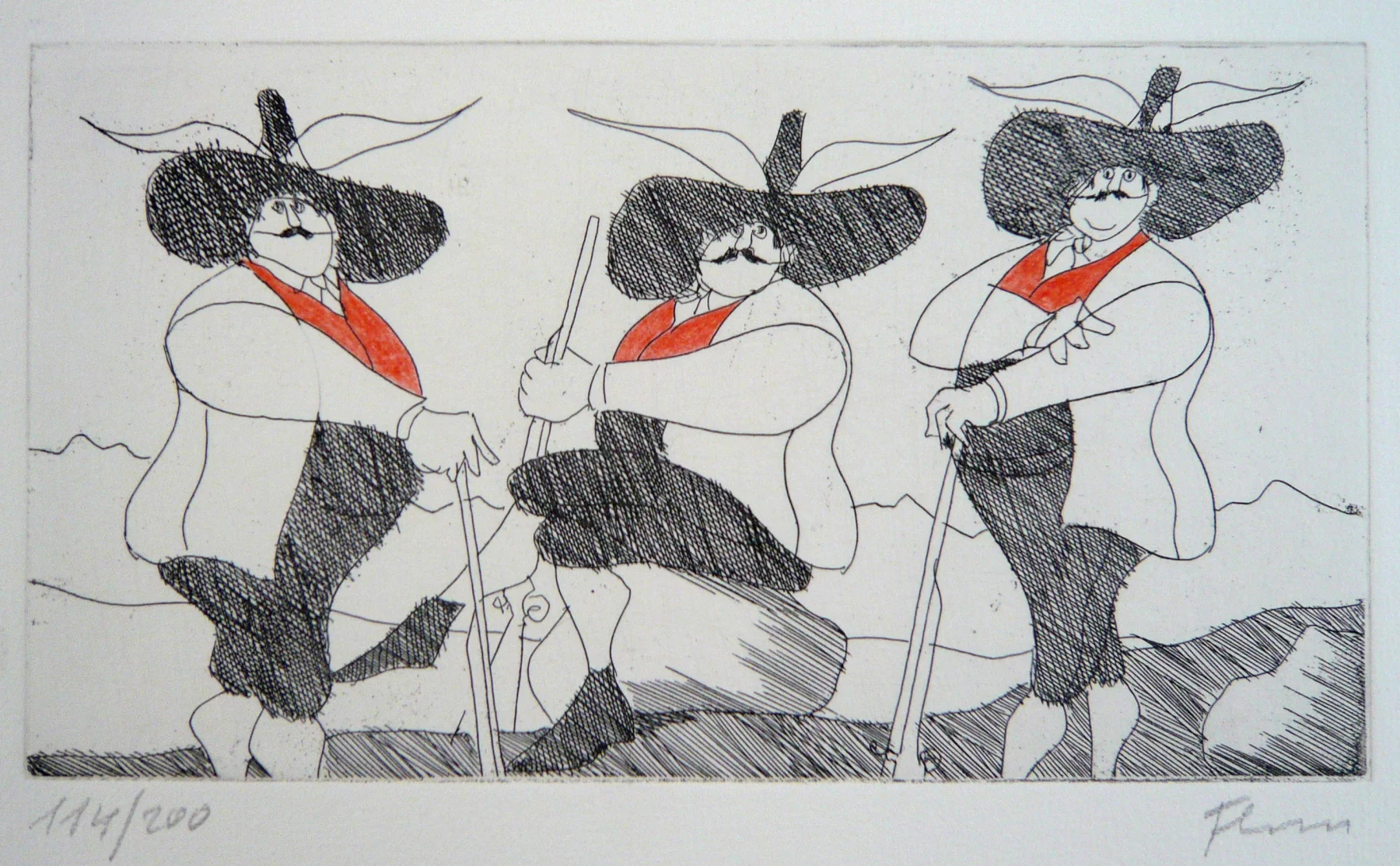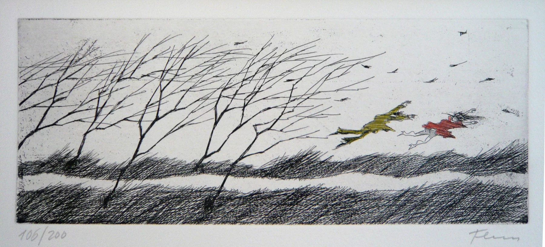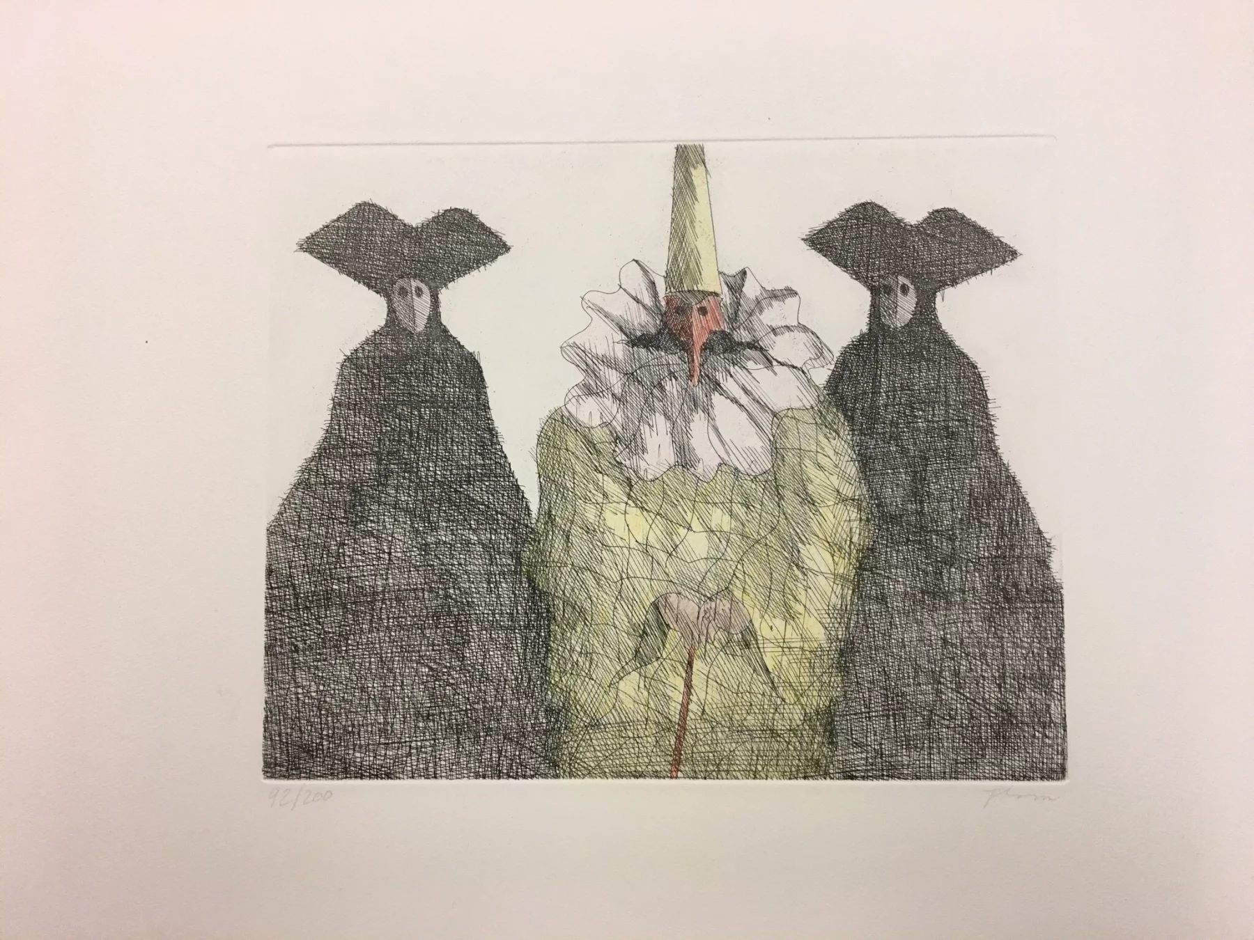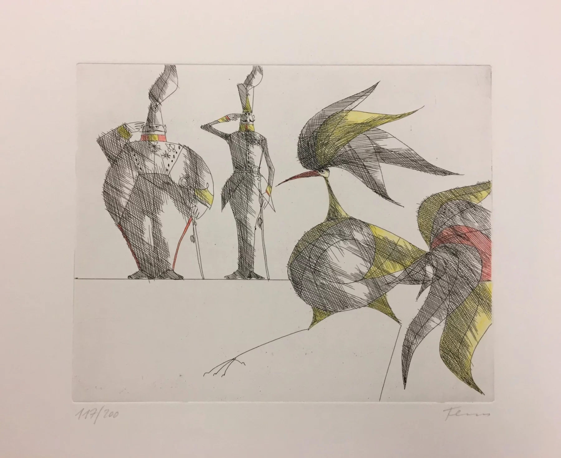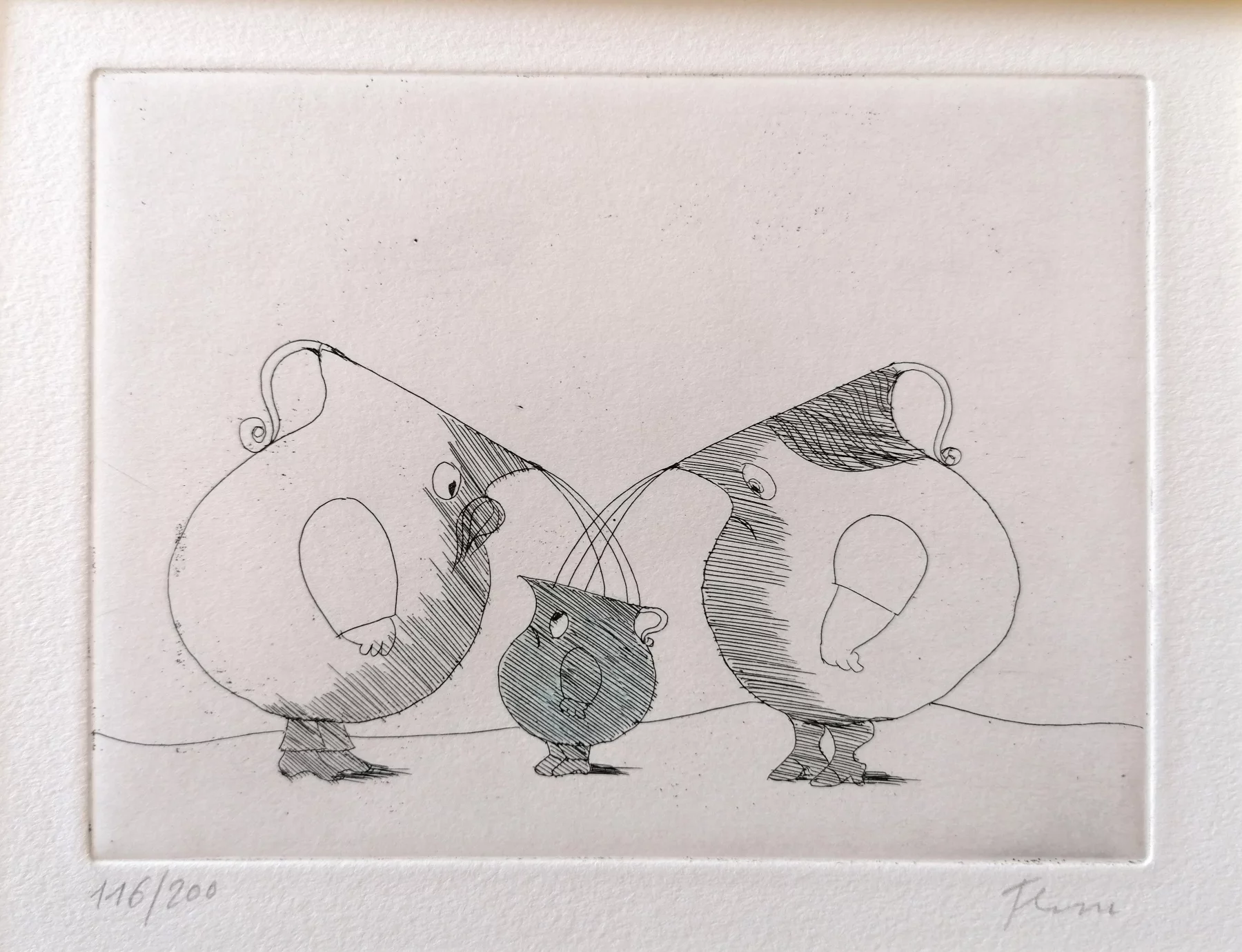 Other frequent motifs include such atmospheric backdrops as the lagoons and carnivals of Venice. Acrobats fascinated him throughout his life. His talent was discovered and encouraged from an early age. His drawing master introduced him to the renowned portrait painter Max von Esterle. His subsequent studies at the Academy of Fine Arts in Berlin* were rudely interrupted in 1944 when he was conscripted to serve in the Wehrmacht. Following the war, the artist became close friends with the graphic artist Alfred Kubin, who became a strong influence on his work. Flora held the first of his many solo exhibitions in Bern as early as 1945. In 1948 he joined the Wiener Art Club. He started drawing cartoons for newspapers including the Neue Zeitung, Die Zeit and The Times literary supplement, and as a book illustrator for publishers including Diogenes in Zürich. He also designed postage stamps and stage sets. He became a member of the P.E.N. club in Liechtenstein in 1999, and served as its president from 2003-2006. Many major galleries and museums have works by Flora in their collections. Erich Kästner described him as a ‘writer of images’, while Friedrich Dürrenmatt called him the ‘thinker and brooder of the caricaturists’.